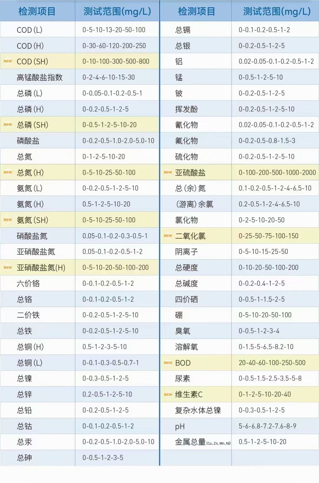 ④、種類齊全:65款常見水質污染物等, 檢測項目多, 檢測范圍廣;